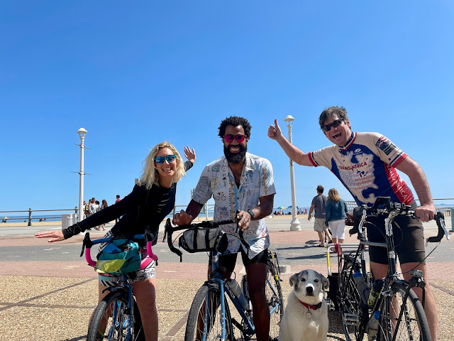 We cycled to First Landing State Park and pedaled down a bumpy sandy trail through the woods and along an inlet. Blanka seemed to enjoy the ride, and her wagon handled the terrain. I was disappointed to learn that our total day’s climbing was only 98 feet. On day number ten I’m worried about a 76 mile ride accompanied by 2175' of climbing. My rig weighs about a hundred pounds and I’m towing another eighty.